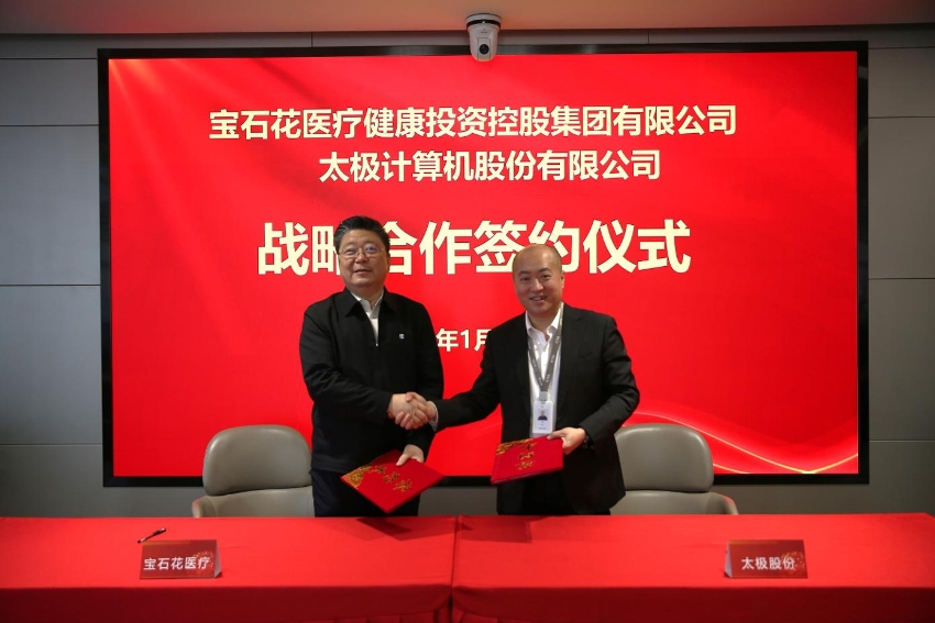 1月22日上午,通用技术宝石花医疗与中国电科太极计算机股份有限公司签署战略合作协议。宝石花医疗董事长、党委书记王旸,太极股份董事长、总裁仲恺出席签约仪式,并代表双方签署战略合作协议。