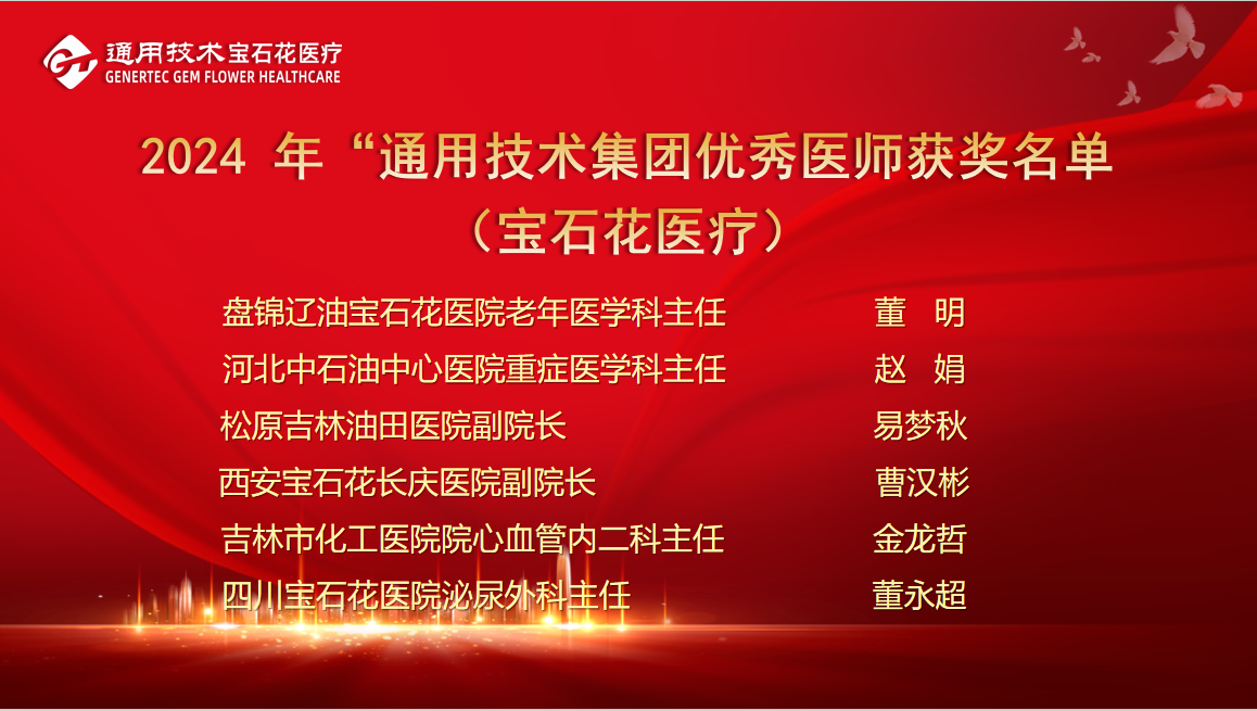 公司纪委书记、党委委员杜永全宣读宝石花医疗获得2024年“通用技术集团优秀医师”人员名单以及《2024年宝石花优秀医师表彰决定》。