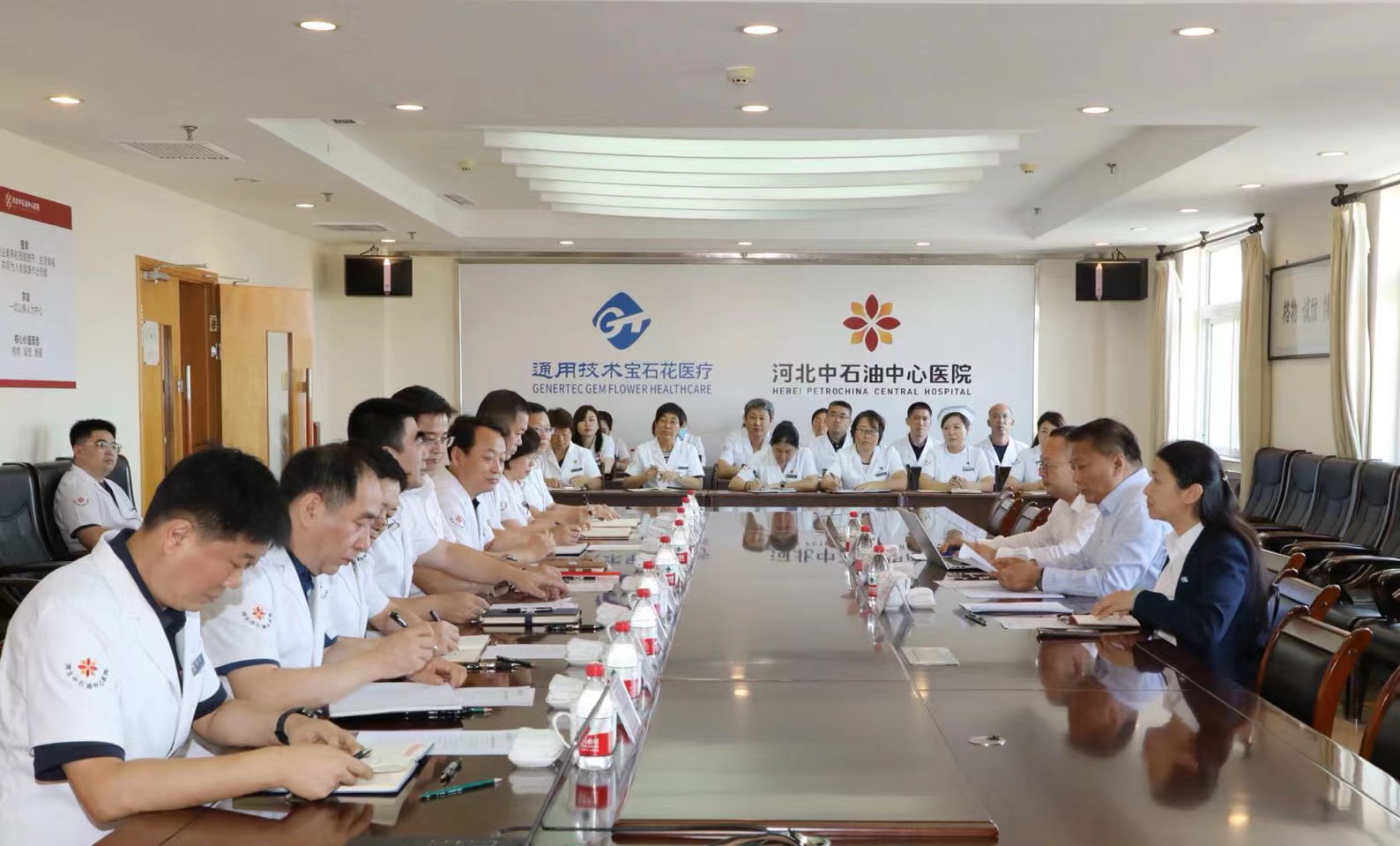9月13日下午,通用技术集团总经理助理、医疗健康事业部总经理李亚东,医疗健康事业部副总经理刘子沛一行赴宝石花医疗河北中石油中心医院调研,宝石花医疗总经理、党委副书记张辉参加调研。