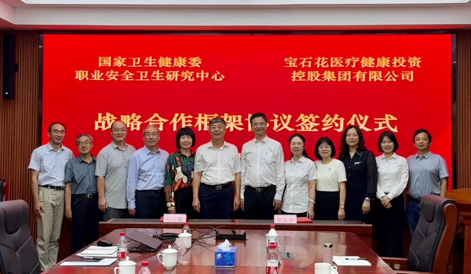 为进一步推进通用技术宝石花医疗职业卫生服务的体系建设和融合发展,2024年9月6日下午,宝石花医疗总经理、党委副书记张辉,总会计师、党委委员牟东平一行赴国家卫生健康委职业安全卫生研究中心进行座谈交流,并签署战略合作框架协议。宝石花医疗总会计师、党委委员牟东平与国家卫生健康委职业安全卫生研究中心副主任田占鹏代表双方进行签约。